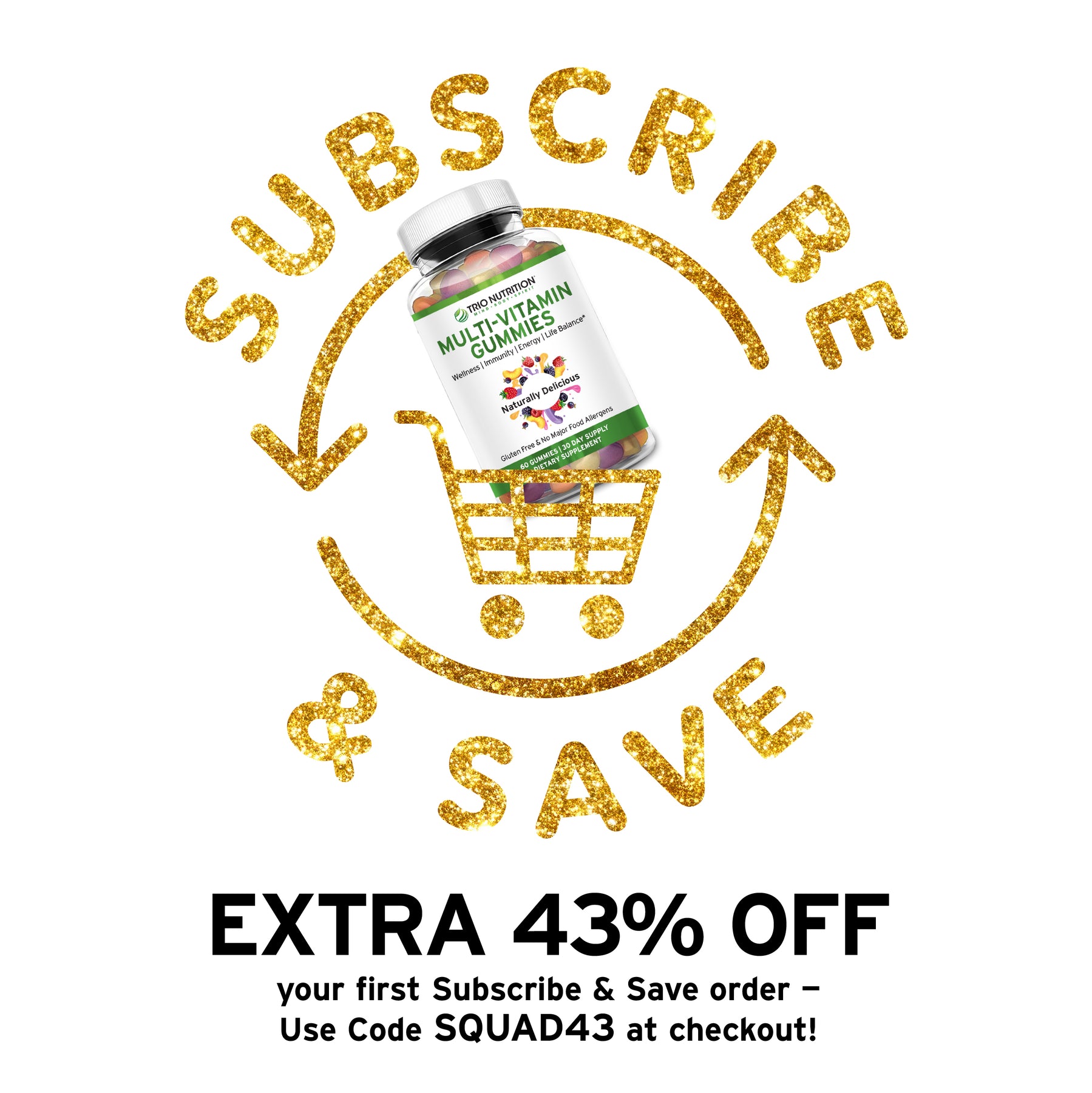 Elevate your daily wellness routine with the delightful taste and powerful benefits of Trio Nutrition's Delicious Premium Multivitamin Gummies. Make them a part of your everyday nutrition regimen and experience the joy of well-being.* Don't wait; invest in your health today!